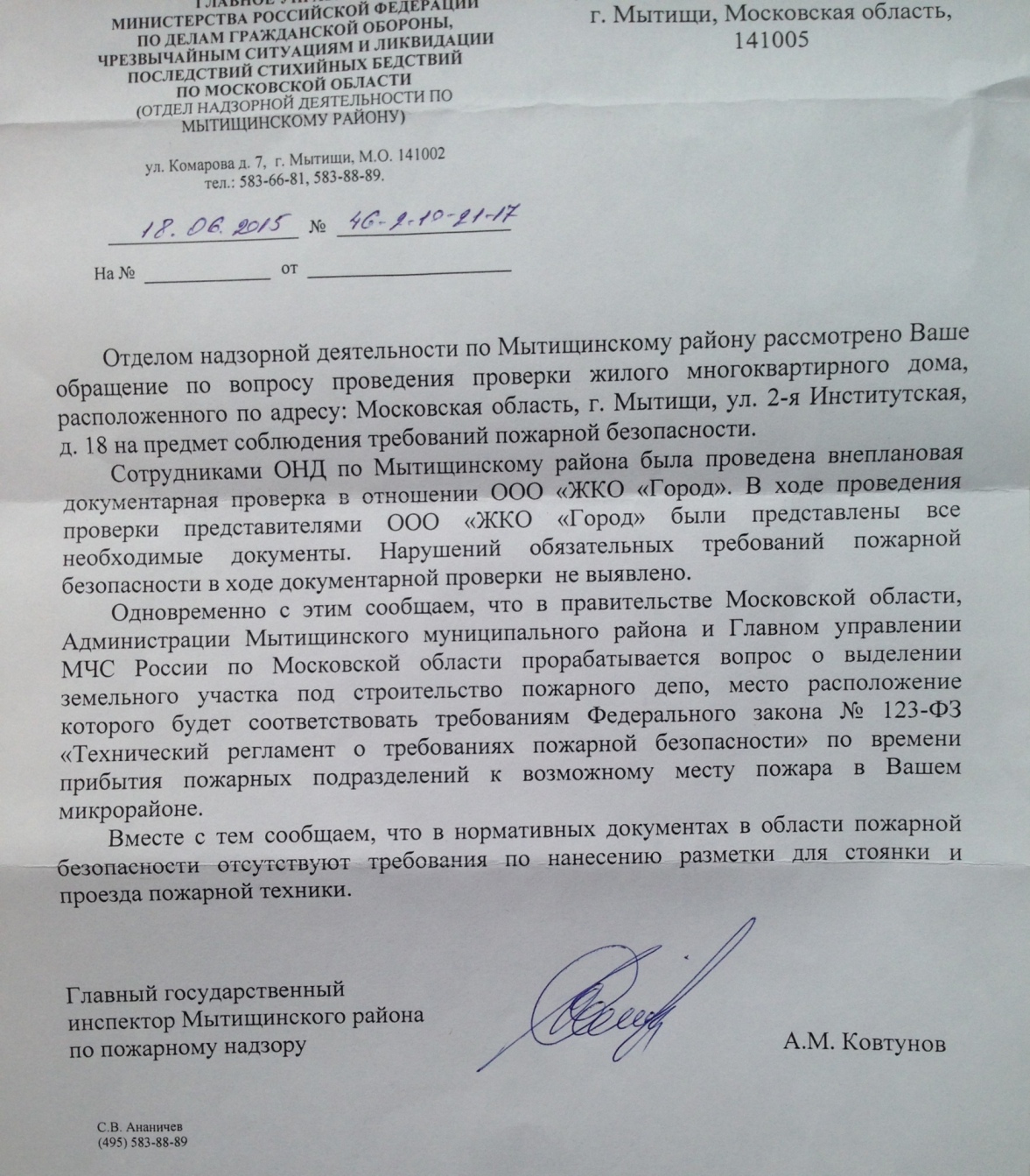 Сегодня забрала с почты ответ от ОНД по вопросу пожарной безопасности нашего дома. Когда у меня заявление принимали, удалось пообщаться с начальником, он сказал, что в курсе, что был пожар и что надо проверку провести, потом мне несколько раз звонили, уточняли, кто у нас упр компания, разъяснили, что сделают запрос в прокуратуру и там уже решат, делать фактическую проверку или документарную. Как видите, проверили только документы... видимо прокуратура не нашла оснований на фактическую. Ну подумаешь, пожар был и никто не приехал его тушить, да и кому нужны эти пожарные рукава в коробках для пожарных рукавов.
